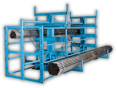 Cantelever Rack is ideal for storing long items such as pipe, lumber, rod, and extrusions. Aisle space needs to allow fork truck access.